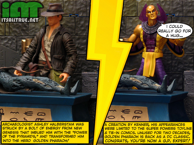 There you go. Consider yourself the foremost expert on Golden Pharaoh! He’s basically being included in DC Classics solely as part of its homage to the Super Powers line. If you’d told any DC fan – even a year ago – that Golden Pharaoh would get a second figure, they’d have laughed you out of the room. We weren’t even sure Mattel could make this guy since he was a Kenner (now part of Hasbro) creation. But he turned out to be a DC character proper and DC Comics okayed his inclusion – much to the chagrin of old and young fans alike, but much to the joy of the fans who loved the Super Powers toy, me among them.
