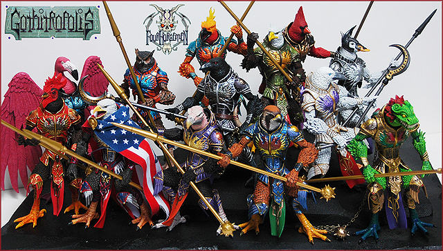 Not only can you choose from 13 different variants of the original Black Raven character (Decimus Hrabban) including the wildly popular Eagalus the screaming eagle, but there are also cool accessories to choose from like interchangeable wings, a battle pack, an interchangeable bone wings & raven skull set, and a base/stand that was created for 6″ scaled action figures but also works well on other scaled figures too!