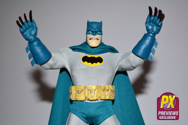 Combining superior sculpting with an abundance of articulation, the One:12 Collective figures feature over 32 points of articulation, capable of over 40,000 possible poses. Digitally sculpted by the industry’s finest artists and painstakingly engineered by Mezco’s production team is a state of the art collectable that holds up to real play. The line kicks off with Batman: The Dark Knight Returns figure, available exclusively through PREVIEWS. The costume is meticulously tailored and uses specially selected materials to create the highest standard of outfitting and drapery at the 6″ scale. Fabrication, color, drapery, comparative scale and mobility are all closely considered to bring the finest attire achievable. The figure includes a display base as well as a multitude of accessories. These accessories are designed to have a “real world” look to further make the figure seem like it has truly come to life. These accessories, also precisely crafted, range from changeable parts to character specific weapons, equipment and props. Make sure to pre-order your Dark Knight Returns PX Action Figure now at your local comic shop!